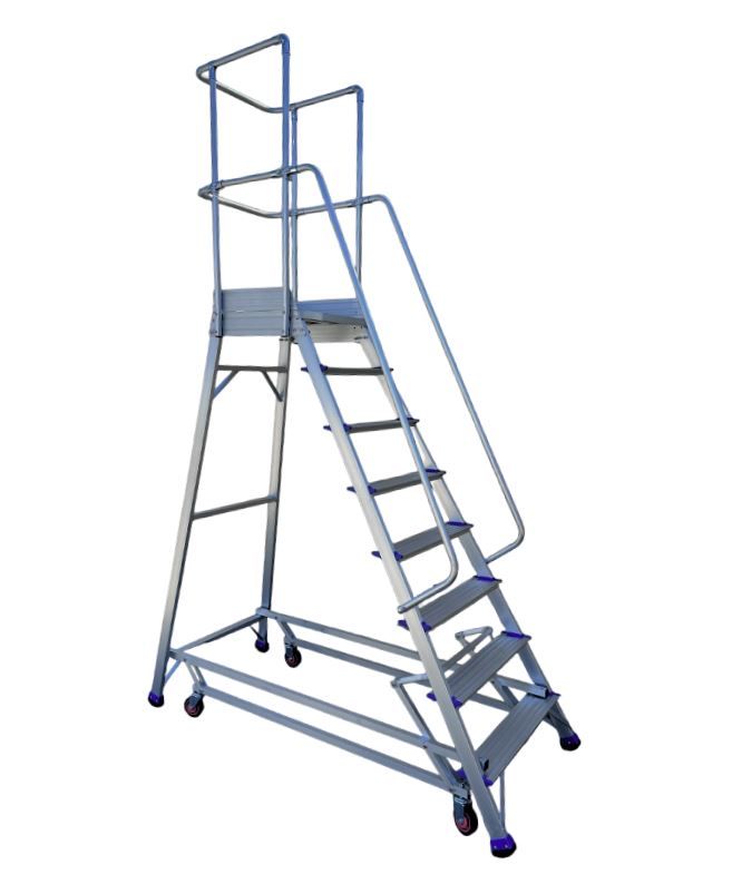 4.2m Reach Mobile Aluminium Scaffold (Base Unit + Guardrail Pack + Adjustable wheels + Stairs pack)