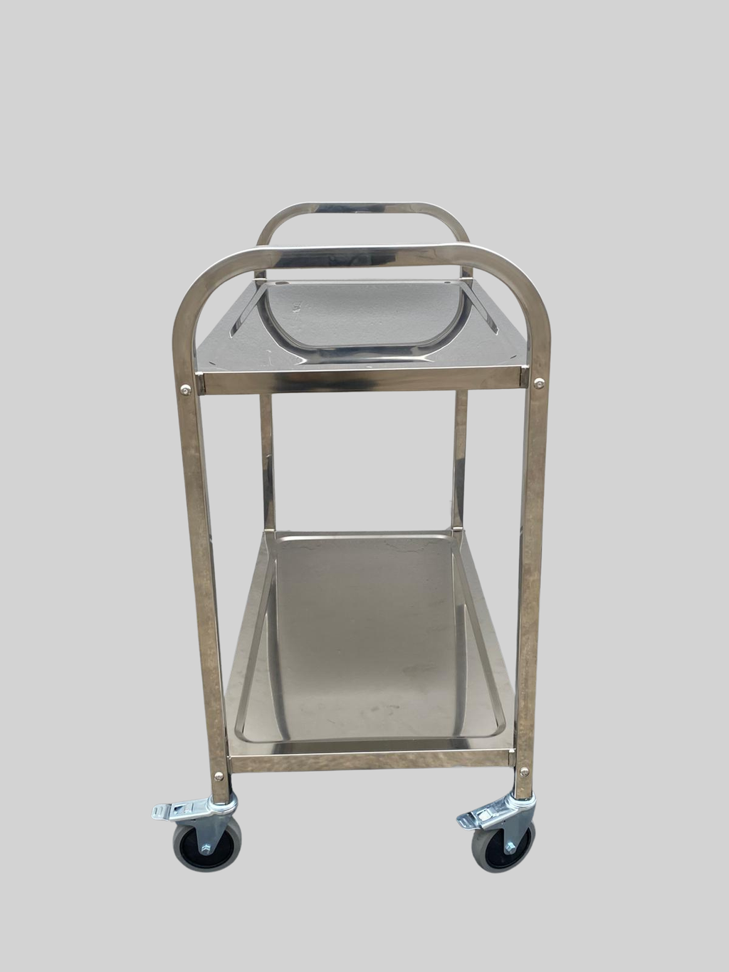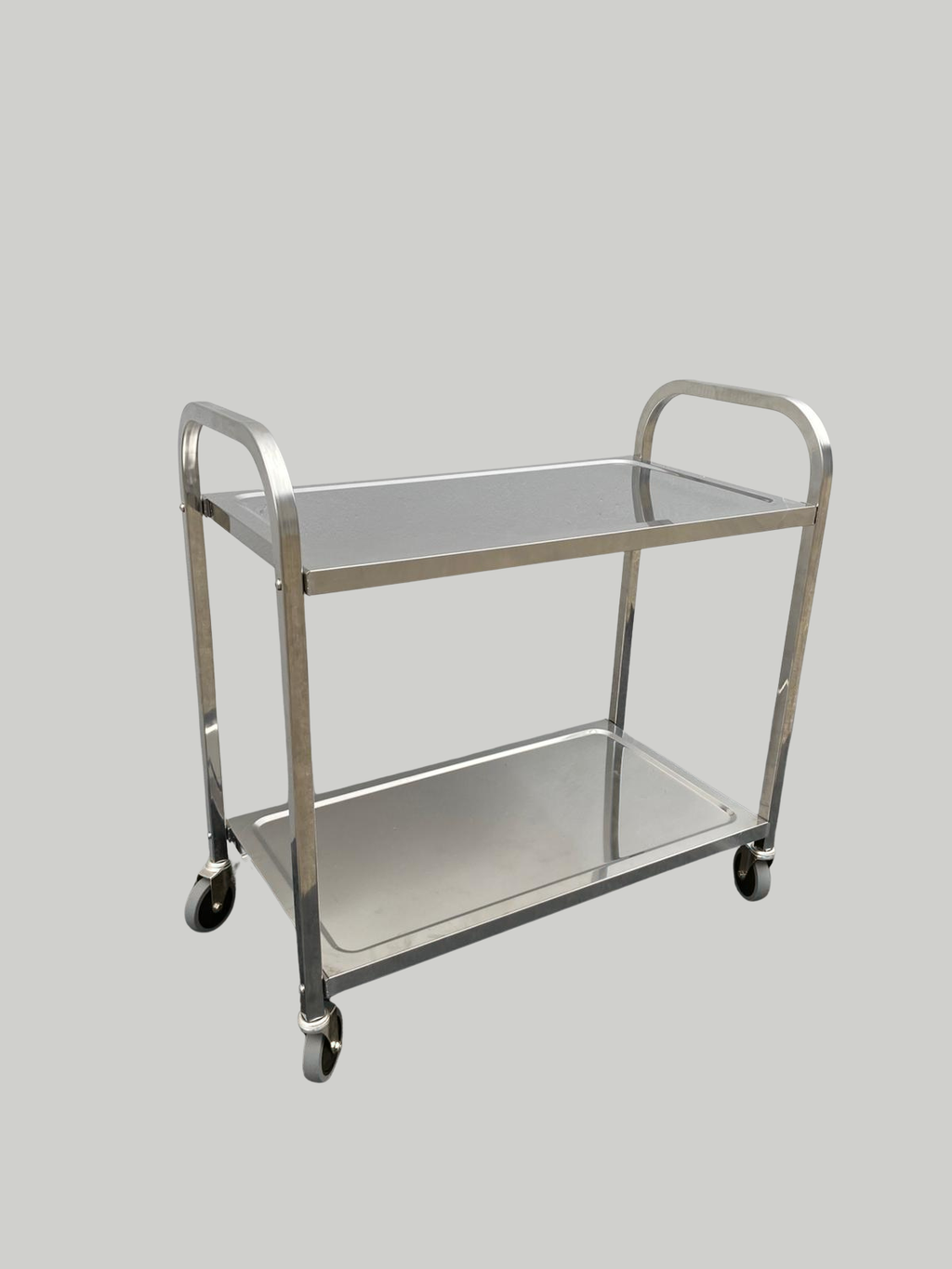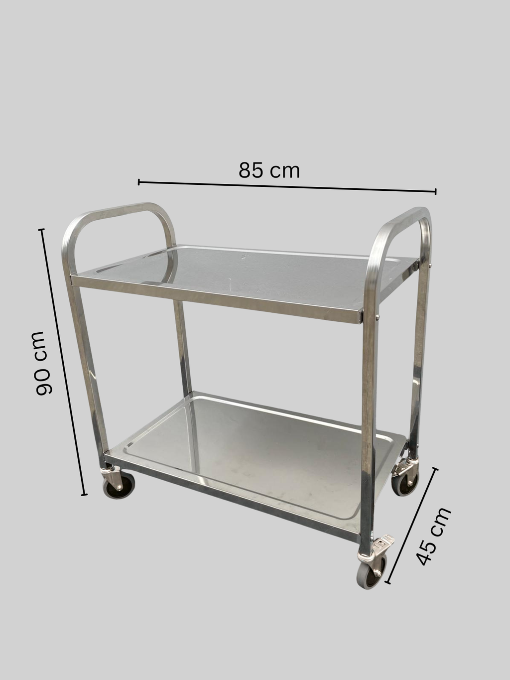 The two-tier design provides ample space for transporting goods, tools, or supplies, making it ideal for kitchens, warehouses, hospitals, hotels, and retail operations. Smooth-rolling wheels and a sturdy handle ensure comfortable use and reliable performance during daily operations.