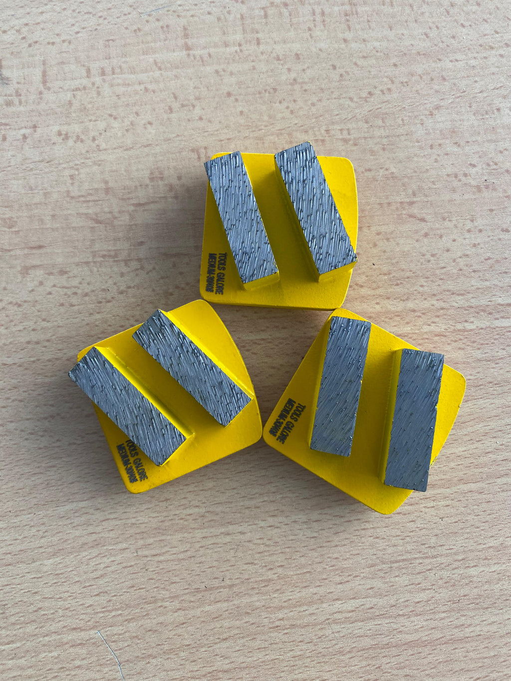 Optimize your concrete grinding performance with our 30/40 grit Double Segment Diamond Grinding Block. The industrial-grade diamond segments deliver aggressive stock removal while maintaining a smoother pass—ideal for surface preparation before polishing or coating. The double-segment design ensures improved balance, longer lifespan, and consistent grinding results.