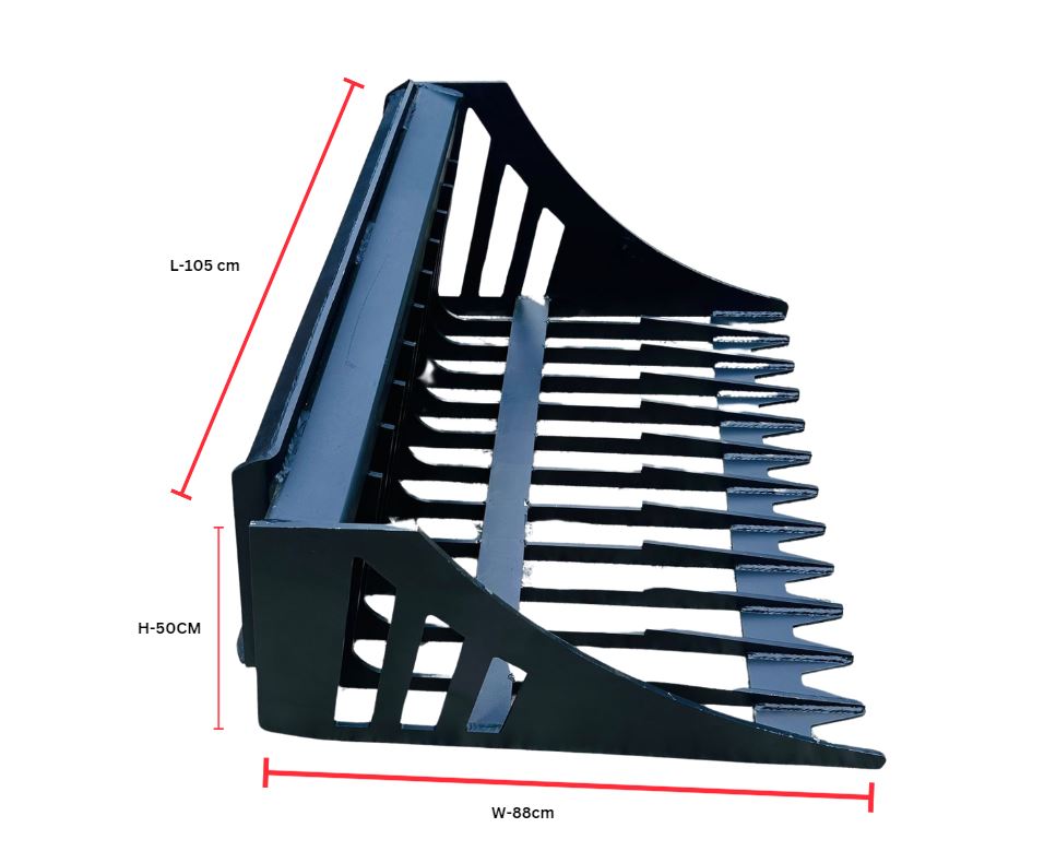A rock bucket designed for the Bobcat S70 is an attachment tailored to enhance the loader's ability to handle rocks, debris, and other heavy materials efficiently. The size and capacity of the rock bucket are designed to be suitable for the compact frame of the Bobcat S70, ensuring efficient material handling without compromising the loader's stability and performance.